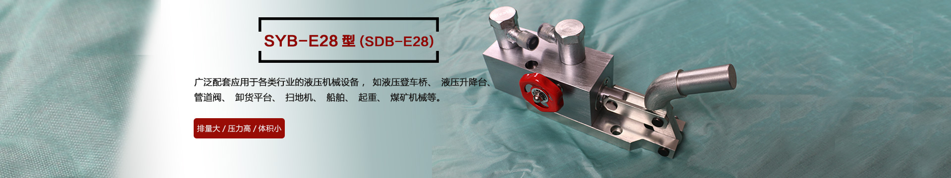 本產(chǎn)品SYB-E28型在本公司原有的SDB-E28型基礎(chǔ)上不斷改進(jìn)改良,廣泛應(yīng)用于各種行業(yè)的機(jī)械設(shè)備,如液壓登車橋、液壓升降臺(tái)、管道閥、卸貨平臺(tái)、掃地機(jī)、船舶、起重、煤礦機(jī)械等液壓機(jī)械設(shè)備上,效率高、結(jié)構(gòu)緊湊,深受客戶的歡迎...[詳情]